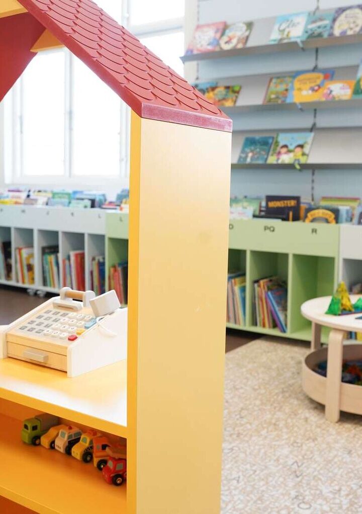 Vi elsker at få besøg af børn og deres voksne. Børnebiblioteket finder I på grundetagen, hvor der både er plads til leg og hyggelige læsestunder.